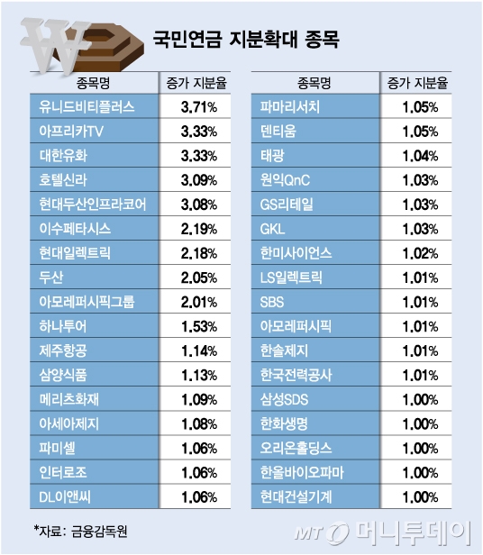 아프리카TV·호텔신라·파미셀…국민연금이 선택한 종목은? 언론사 : 머니투데이 │ 보도일시 : 2023. 01. 04 |