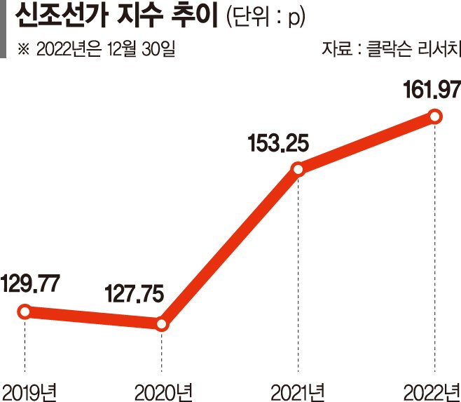 고부가 LNG선이 선가상승 주도 글로벌 조선업계 호황에 힘입어 지난해 우상향 흐름을 탔던 신조선가 지수의 연말 종가가 160p선에서 마무리됐다. 조선 호황기 시절인 지난 2009년 수준까지 올라선 것으로 국내 조선사들의 실적 개선에 속도가 붙을 것으로 보인다. 4일 관련 업계에 따르면 지난해 12월 30일 기준 신조선가 지수는 161.85로 집계됐다. 2021년 말 153.25였던 것에서 1년 새 5.6%P 증가한 수치다. 지난해 6월에 이미 160수준까지 올랐는데 160를 넘어선 것은 조선 호황기였던 2009년 2월 이후 13년 4개월 만이다. 신조선가 지수는 1998년 전 세계 선박 건조 가격 평균을 100으로 기준 잡아 지수화한 것으로 높을수록 선가가 많이 올랐다는 것을 의미한다. 지난해 신조선가가 상승세를 보인 것은 국제해사기구(IMO)의 환경 규제 강화로 친환경 선박에 대한 발주가 늘고 노후 유조선 교체 수요도 증가한 영향이다. 특히 국내 조선사가 주력하고 있는 고부가가치 선박인 액화천연가스(LNG) 운반선이 선가 상승을 주도했다. LNG선의 신조선가는 2021년 말 기준 2억1000만달러였던 것에서 지난해 12월 30일 기준 2억4800만달러로 18.1% 증가했다. 아울러 유조선(VLCC 기준) 신조선가 역시 지난달 30일 기준 120을 기록해 2021년 연말과 비교해 7.1% 올랐다. 건조된지 20년이 넘은 노후 유조선이 200척에 달해 향후 1~2년간 발주 수요가 늘 것으로 전망되기 때문이다. 다만 올해 선박 가격은 지난해 연말과 비슷한 수준을 유지할 것으로 보인다. 이동현 대신증권 연구원은 "선박 가격이 앞으로 횡보할 것"이라며 "새해 선박 발주 수요가 지난해 대비 감소하지만 도크가 차있는 관계로 공급이 제한돼 가격 하락까지 가진 않을 것"이라고 말했다. ![]() |
