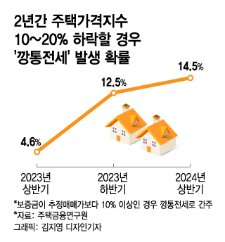[머니투데이 김남이 기자] '깡통전세'의 위험이 높아질 수 있다는 연구결과가 나왔다. 집값이 10~20% 하락하면 올해 하반기 계약기간이 끝나는 전세 10건 중 1건은 집값이 보증금에 못 미치는 깡통전세가 될 수 있다는 분석이다. 지난해 전국 아파트 평균 하락률은 7.22%다.