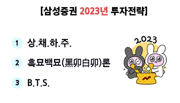 '흑묘백묘, BTS, 상채하주'...2023년 투자 키워드 세 가지 언론사 : 머니투데이 │ 보도일시 : 2023. 01. 05 |