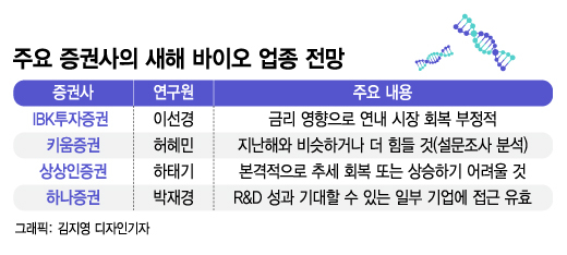지난해 말 레고켐바이오의 대규모 기술수출은 국내 바이오 업계에 단비가 됐다. 지난해 국내 바이오 업계 최대 규모 기술수출이다. 특히 최근 글로벌 항암제 개발 분야에서 주목받는 항체약물접합체(ADC) 플랫폼 기술수출이란 점에서 의미가 있다. 레고켐바이오의 활약에도 불구하고 새해 바이오 업계에 대한 시장의 평가는 우호적이지 않다. 최근 증권가에서 새해 바이오 업종에 대한 전망을 줄줄이 내놓고 있는데 대체로 고금리로 인한 불확실한 국면이 당분간 지속될 것이란 분석이 우세하다. 5일 이선경 IBK투자증권 연구원은 올해 바이오 업종에 대해 "고금리가 지속될 경우 대형 임상 실적이나 인수합병(M&A) 등 이벤트 없이 단기적 반등은 어려울 것"이라고 내다봤다. 이 연구원은 "(바이오 업종이) 회복 구간에 직면했을 때 낮은 금리는 상승 폭을 견인하는 핵심 요인"이라며 "고금리가 지속된다면 투자심리 회복 속도는 느려질 수밖에 없고, 시장 회복은 연내 불가능할 것"이라고 판단했다. 허혜민 키움증권 연구원은 올해 바이오 산업 전망을 묻는 설문조사를 업계와 금융업 종사자를 대상으로 지난해 12월 하반기 진행한 결과 응답자의 38%가 '2023년이 더 힘들다'고 응답했다고 소개했다. 이어 '2022년과 유사할 것'이 33%, '개선된다'가 29%로 집계됐다. 즉 약 71%가 올해 바이오 산업이 지난해와 비슷하거나 더 힘들 것이라고 답변한 셈이다. 허 연구원은 "올해 바이오 산업을 부정적으로 보는 이유로 '자금 조달의 어려움'이 가장 많았다"며 "국내 제약·바이오 산업이 다시 도약하려면 자금 수혈과 정부 지원이 필요하단 점을 시사한다"고 진단했다. 하태기 상상인증권 연구원은 올해 상반기 제약·바이오에 대한 투자의견을 '중립'(Neutral)으로 제시했다. 국내 증권가에서 투자의견 '중립'은 사실상 상당히 박한 평가다. 자체 신약 개발 잠재력 부족, 고금리 시대 지속을 주요 이유로 꼽았다. 하 연구원은 "급격히 인상된 금리 수준이 올해 상반기까지 5%대로 상승하고 그 수준으로 유지될 것으로 보이는 만큼 성장주인 바이오가 본격적으로 추세를 회복하거나 상승하긴 어려울 것"이라며 "올해 일부 바이오 기업에 자금조달이란 큰 도전이 있을 수 있어 현금흐름이 확실한 바이오에만 관심을 가질 필요가 있다"고 조언했다. 박재경 하나증권 연구원은 바이오에 대해 긍정적(업사이드)인 측면이 있다고 보면서도 "제약·바이오의 유동성 확대는 여전히 제한적"이라며 "업종의 전반적인 멀티플(가치) 확장을 기대하기보다 R&D(연구개발) 성과를 기대할 수 있는 일부 기업에 대한 접근이 유요할 것"이라고 분석했다. 다만 일부 바이오의 기술수출 성과와 올해 나올 주요 신약 파이프라인 임상 데이터 공개 기대감 등을 고려하면 투자 기회를 찾을 수 있을 것이란 평가도 나왔다. 위해주, 오의림, 강은지 한국투자증권 연구원은 "2022년 기술거래는 양보단 질"이라며 레고켐바이오와 알테오젠, 에이비엘바이오의 지난해 기술수출을 높게 평가했다. 이들은 "레고켐바이오는 추가적인 기술수출 또는 공동개발 계약이 기대된다"며 "알테오젠의 피하주사 제형 플랫폼은 신약뿐 아니라 바이오시밀러(바이오의약품 복제약)에 적용할 수 있는 확장성을 높게 평가하고, 에이비엘바이오는 사노피에 기술이전한 파킨슨병 이중항체의 개발 상황에 주목할 필요가 있다"고 분석했다. 허혜민 키움증권 연구원은 "2023년 활발한 기술 거래와 긍정적인 임상 데이터 결과 등 모멘텀(동력)이 받쳐준다면 제약·바이오지수 아웃퍼폼(시장수익률 상회)이 가능할 것"이라며 "올해 작년보다 활발한 기술 거래와 M&A가 예상되고, 향후 학회에서 데이터 발표 모멘텀이 발생할 가능성이 높을 것"이라고 전망했다. ![]() |