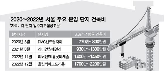 [머니투데이 유엄식 기자] [물가상승·금리인상으로 건축비 급증…강북권, 서남권 분양 단지도 3.3㎡당 1500만원 넘어]